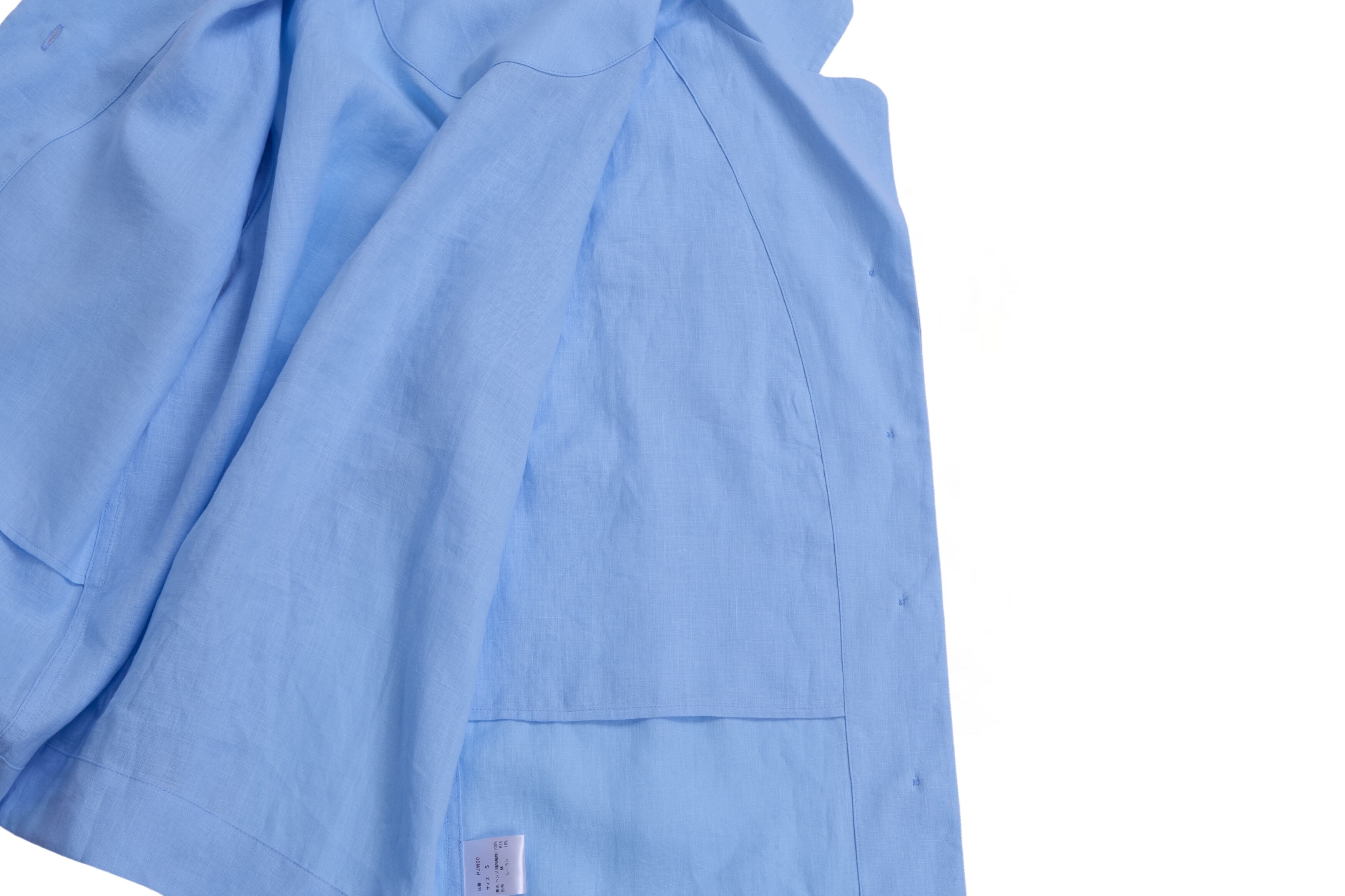 ・袖ぐりは袋縫いで肌へのあたりをやさしく、脇、またぐりは折伏縫いで強度を高め、からだの動きや着心地を考えた縫製仕様を心掛けました。襟はパイピングを施すことで、形をよく整えて干せば型崩れしにくい仕様にしました。